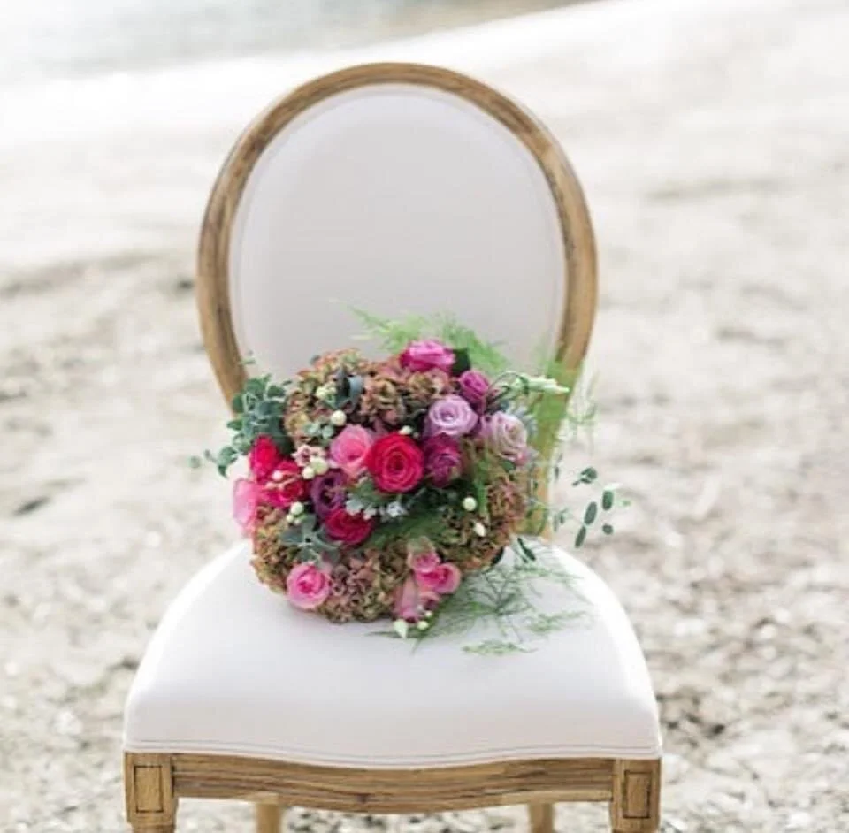 This timeless piece, with a carved white washed frame, is prefect for any gathering or ceremony. Each chair is hand constructed with a white padded seat and back rest. This chair is comfortable and eye catching. It will have your guests discussing your choice of seating long after your event has ended.